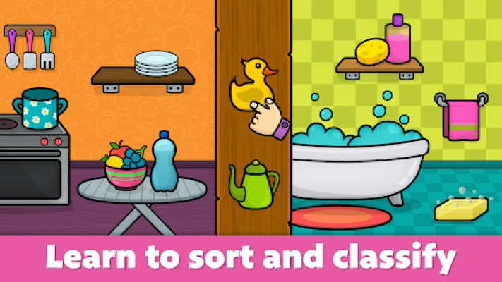 The app includes 30 learning games for toddlers on matching, sorting and logic. Each game has fun tasks to help Bimi Boo and his animal friends. The baby shapes and color learning game is suitable for boys and girls. All Bimi Boo games for toddlers were designed by experts in early child education.