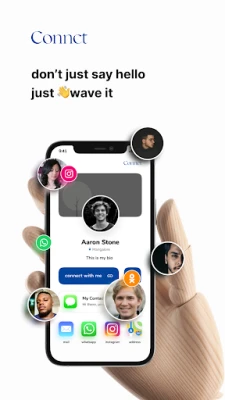 The Connct card has an NFC chip inside that wirelessly sends your information. If you tap the card on compatible phones, a link will open up with all your information. Ready to be saved to the phone. For older phones that don't have NFC, there is a QR code on the back of your digital card.