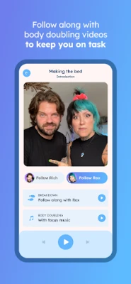 • Choose one from any of the available tasks to try out body doubling with Rich & Rox for free