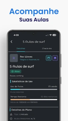 - Monitore Seu Progresso: Acompanhe suas lições, metas e conquistas no surf de forma clara e motivadora.