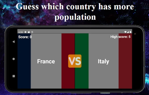 The game is very simple. You will see 2 countries on the screen. Click on the country which you think has more population.